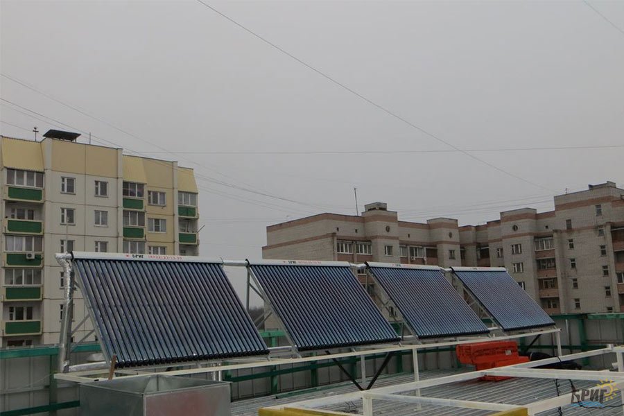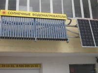 | Солнечный водонагреватель HP58-18, установленный на крыше автомойки - п. Дубовое Белгородской области | Солнечные коллекторы на крыше дома - улица Орлова, город Белгород | Солнечные коллекторы балконного типа и солнечные панели 2х95 Вт - ул. Губкина 18В, город Белгород |