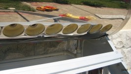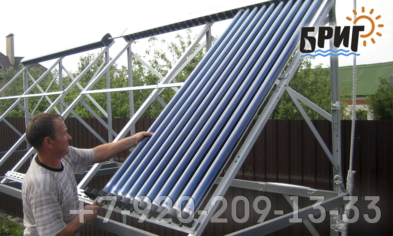 | Монтаж вакуумных трубок солнечного коллектора | Солнечные коллекторы для подогрева воды в бассейне - п. Дубовое Белгородская область | Солнечный водонагреватель HP58-18, установленный в жилом доме - п.Таврово Белгородской области |