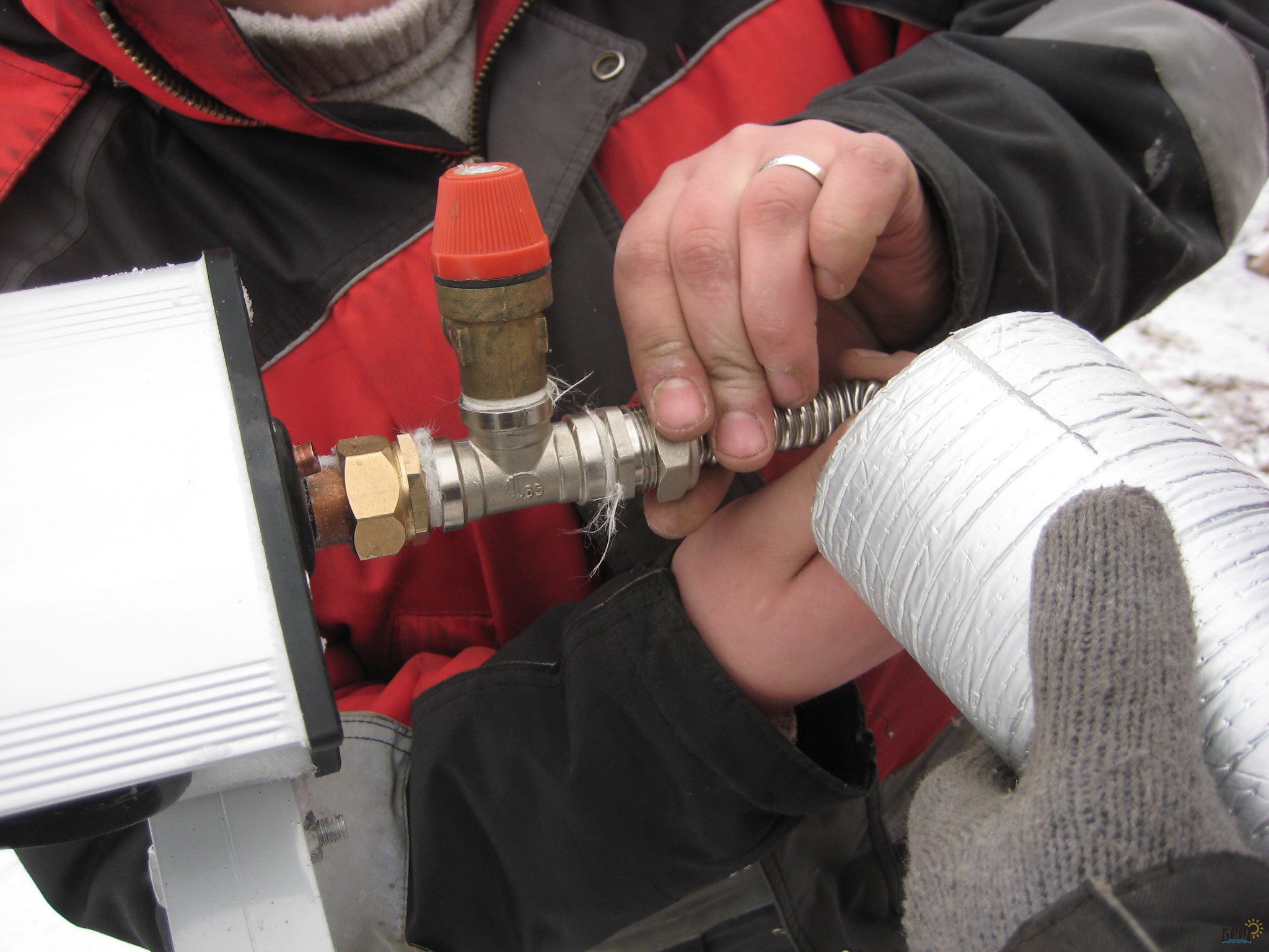 | Солнечный водонагреватель HP58-18, в пос. Дубовое, фото 4 | Солнечный водонагреватель HP58-18, в пос. Дубовое, закрытые трубки на время отпуска, водонагреватель выключен | Термо-смеситель для регулировки нагрева воды солнечным водонагревателем, пос. Дубовое |